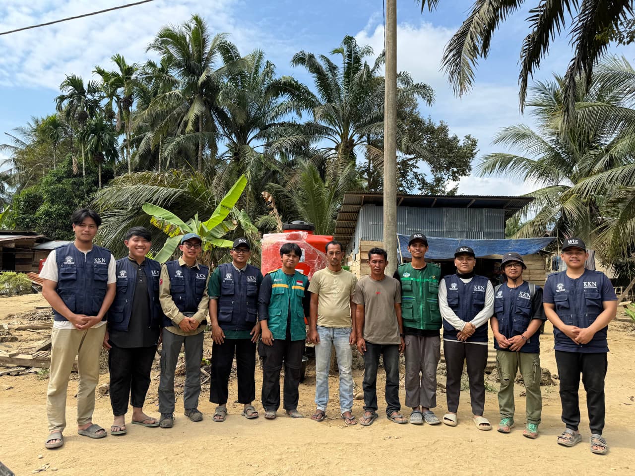 (STIBA.ac.id) Aceh Tamiang — Setelah banjir melanda Dusun Bahagia, Desa Pematang Durian, Kecamatan Sekera, Kabupaten Aceh Tamiang, akses air bersih jadi masalah serius bagi warga. Untuk itu, tim Kuliah Kerja Nyata (KKN) Kemanusiaan Institut Agama Islam (IAI) STIBA Makassar bersama Wahdah Inspirasi Zakat turun langsung membantu. Mereka membuat sumur lengkap dengan tandon, pipa, dan mesin air di lokasi pada Selasa (3/2/2025).
