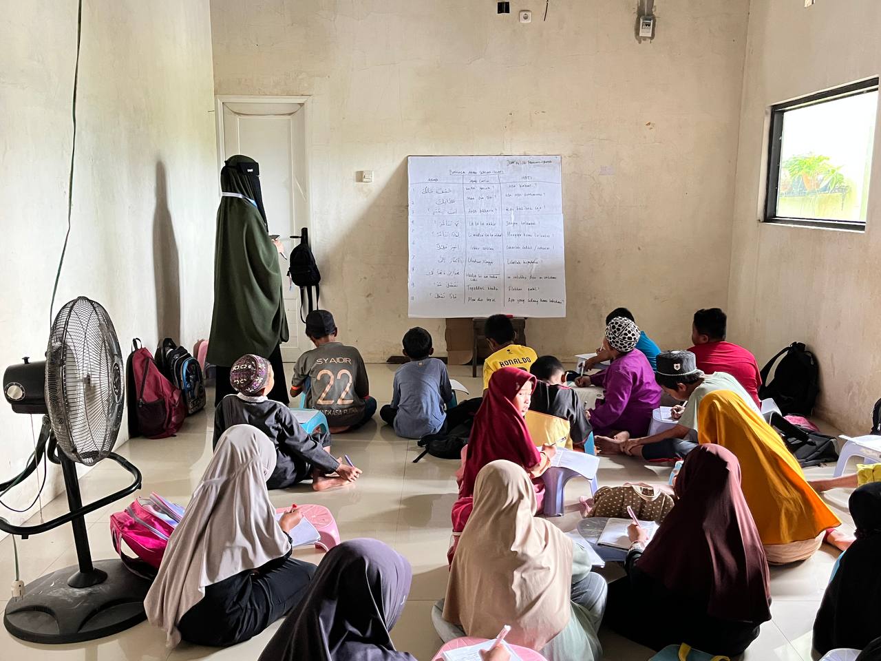 Kegiatan pengajaran ini resmi dimulai Senin, 16 Februari 2026, dan berjalan enam hari dalam sepekan. Bukan kegiatan sesekali, tapi komitmen penuh yang hadir hampir setiap hari. Mulai pukul 13.00 Wita, sekitar 60 anak berkumpul, membaca Al-Qur’an dan Iqra, menghafalkan doa-doa harian, mengulang surah-surah pendek, hingga bermain dalam permainan edukatif yang membuat belajar terasa seperti bermain.