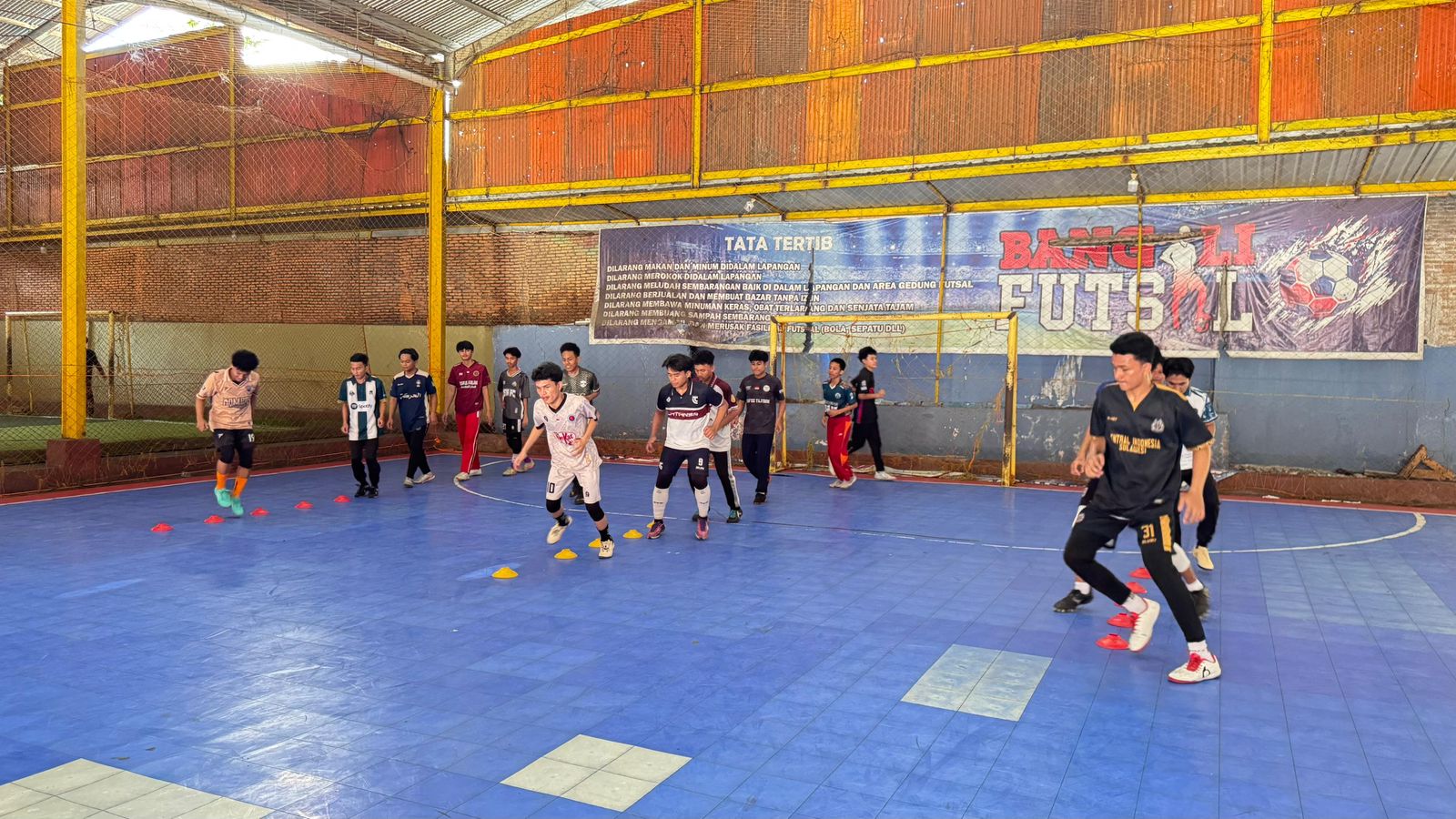 Sesi dibuka dengan pengarahan, dilanjutkan dengan pemanasan sebelum masuk ke inti latihan berupa teknik dasar futsal yang digembleng secara berulang, latihan fisik dan kelincahan yang menguji stamina, hingga gim internal yang menjadi arena para atlet unjuk kemampuan sekaligus membangun chemistry sebagai satu tim. Evaluasi di sesi penutup melengkapi rangkaian latihan yang padat namun penuh semangat.