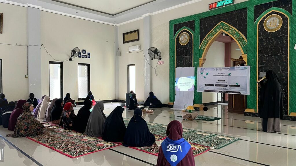 Pemateri dari MWC mengajarkan cara memandikan dan mengafani jenazah sesuai sunah. Tidak cuma teori, peserta langsung praktik menggunakan boneka peraga. Mahasiswi KKN juga ikut mendampingi agar semua peserta bisa paham.