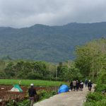 Ba’da shalat dzuhur-ashar mulailah kaki-kaki mereka menapak jalan untuk turun, tak lupa pamitan dengan pengelola villa dan beberapa warga yang sempat bersua. Awan mendung, namun enggan menumpahkan tetesnya, cuaca yang bersahabat. Kiri kanan jalan merupakan hutan dan batu-batu besar, juga kebun-kebun sayur dan buah-buahan.